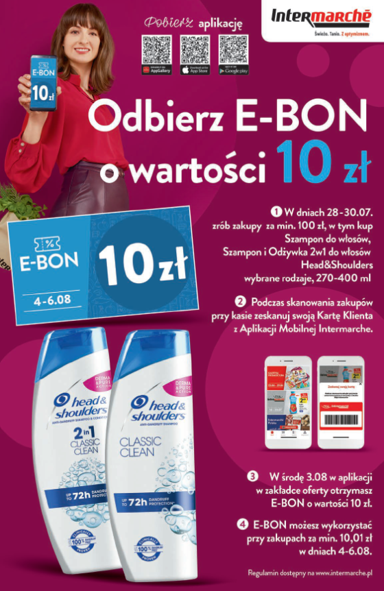 W środę 3.08w aplikacji w zakładce oferty otrzymasz E-Bon o wartości 10zł. E-Bon jest do jednorazowego wykorzystania i możesz go wykorzystać przy zakupach za min. 10,01zł w dniach 4-6.08.