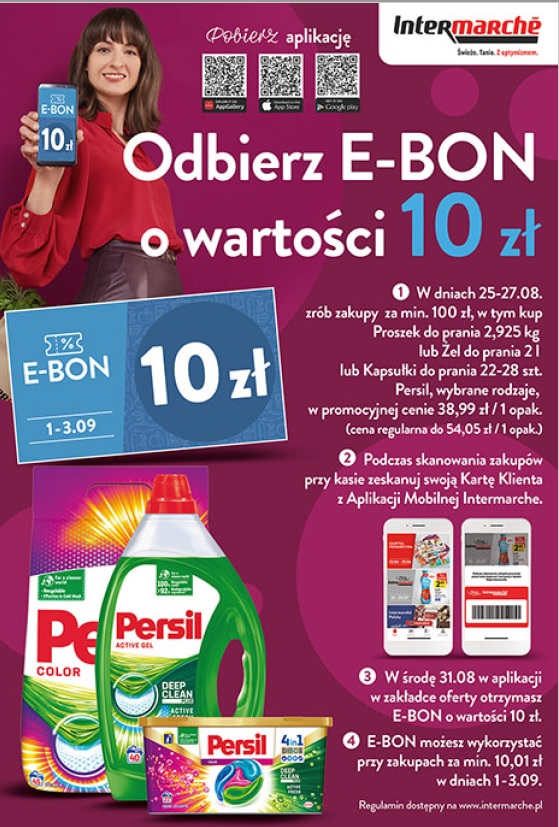 W dniach 25-27.08 zrób zakupy za min. 100zł, w tym kup proszek do prania 2,925 kg lub żel do prania 2l lub kapsułki do prania 22-28szt. Persil wybrane rodzaje, w promocyjne cenie 38,99zł /1 opak. (cena regularna do 54,05zł) .