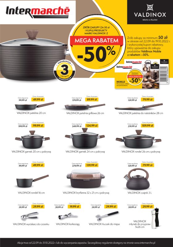 Zrób zakupy za min 50zł w okresie od 22.09 do 19.10 i odbierz kupon rabatowy, który upoważnia do zakupu produktów marki Valdinox Noble z rabatem -50%.